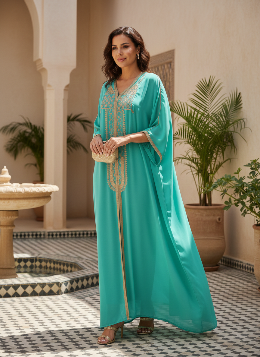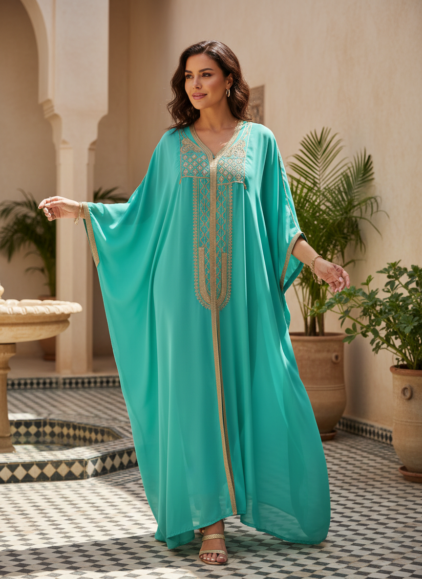 Refresh your wardrobe with the spirited elegance of this Azure Sky ensemble. The striking aquatic hue evokes a sense of breezy sophistication, making it a standout choice for sunlit celebrations and elegant resort gatherings. The voluminous silhouette is designed to float around the body, offering an airy, ethereal drape that combines supreme comfort with high-fashion allure.